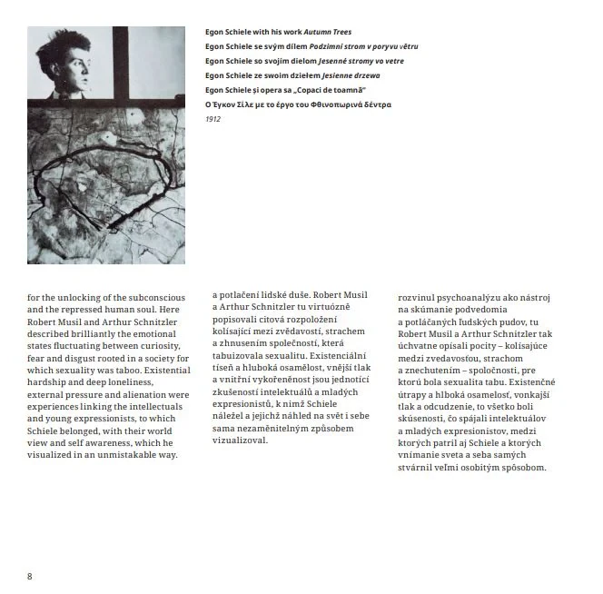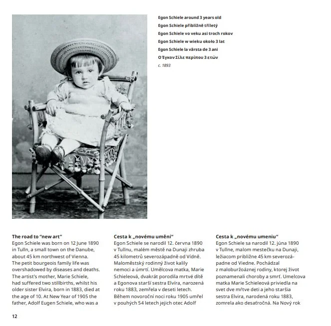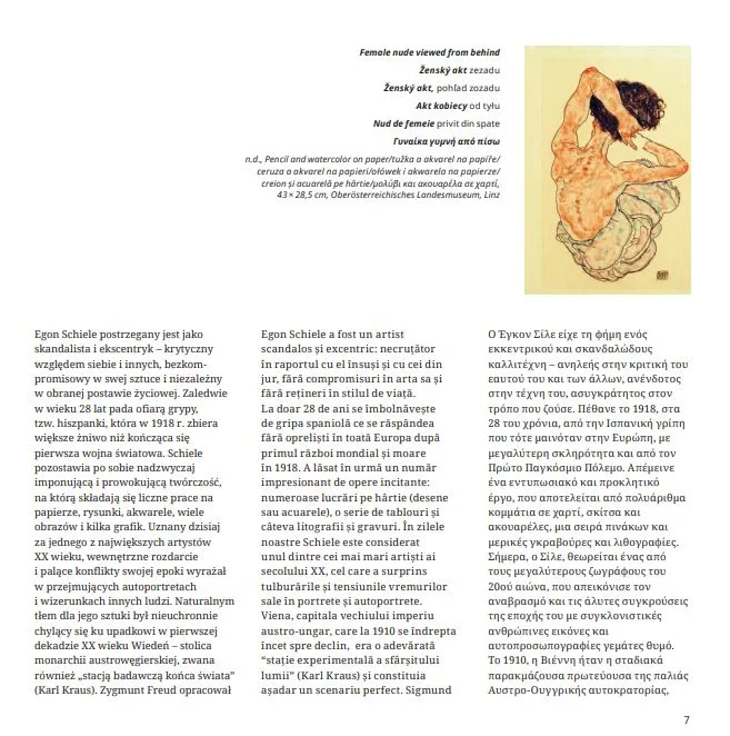 Universul artistic al lui Schiele se poate redescoperi prin ilustratiile numeroase din acest volum- desene, acuarele, grafica si picturi.