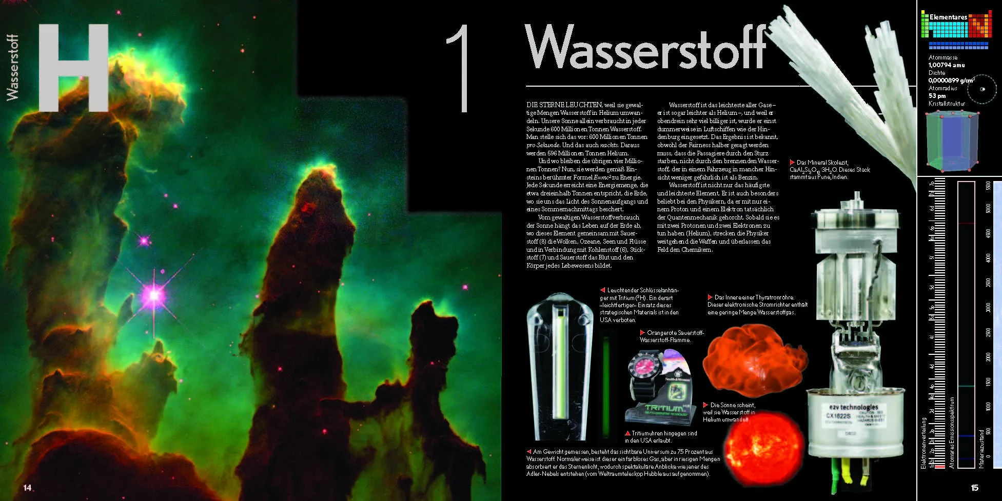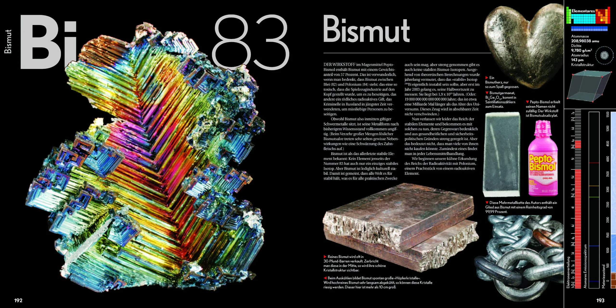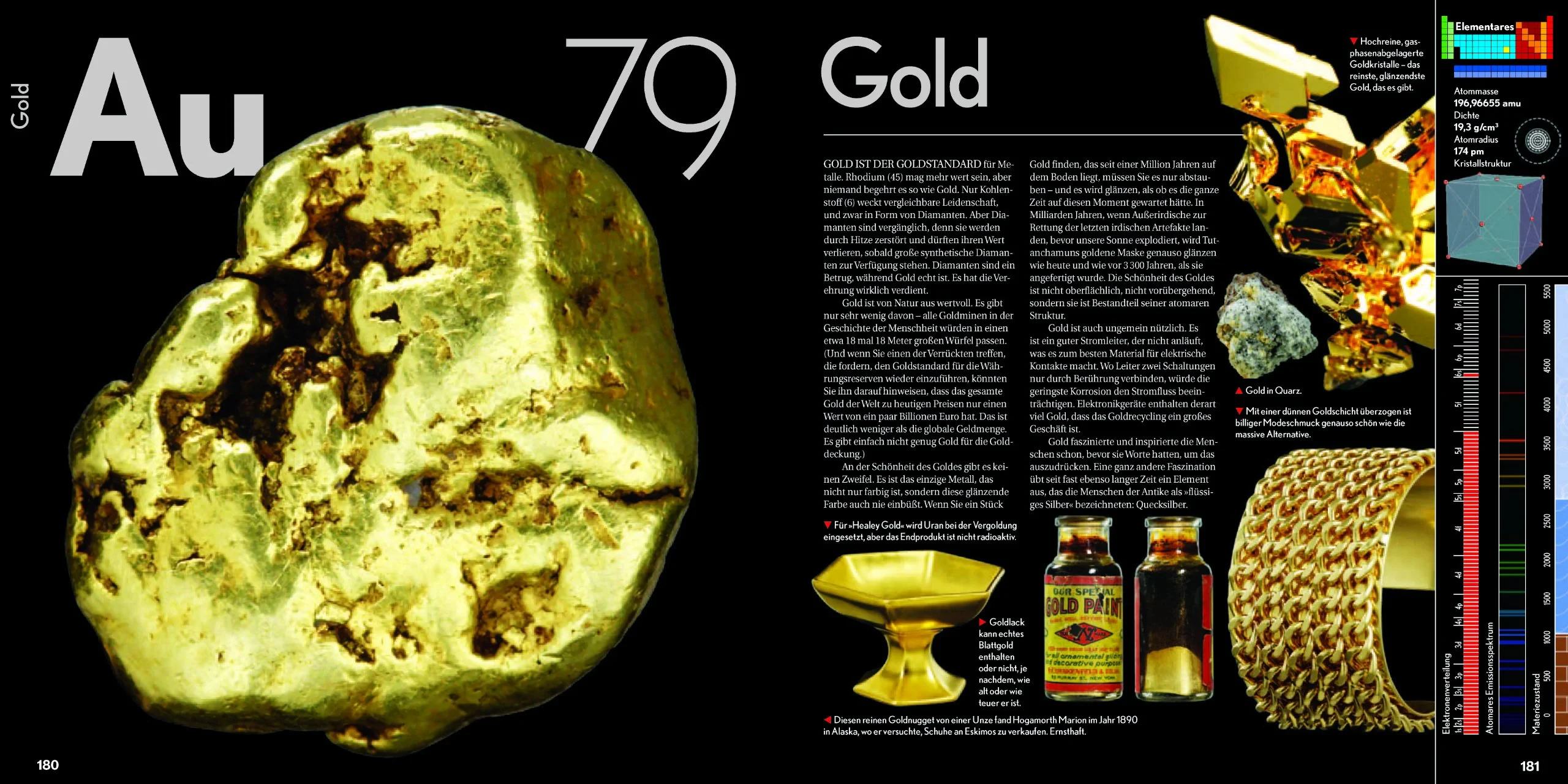 Auch die wissenschaftlichen Fakten fehlen nicht: Angeführt werden atomares Gewicht, Dichte sowie Schmelz- und Siedepunkt eines jeden Elements.