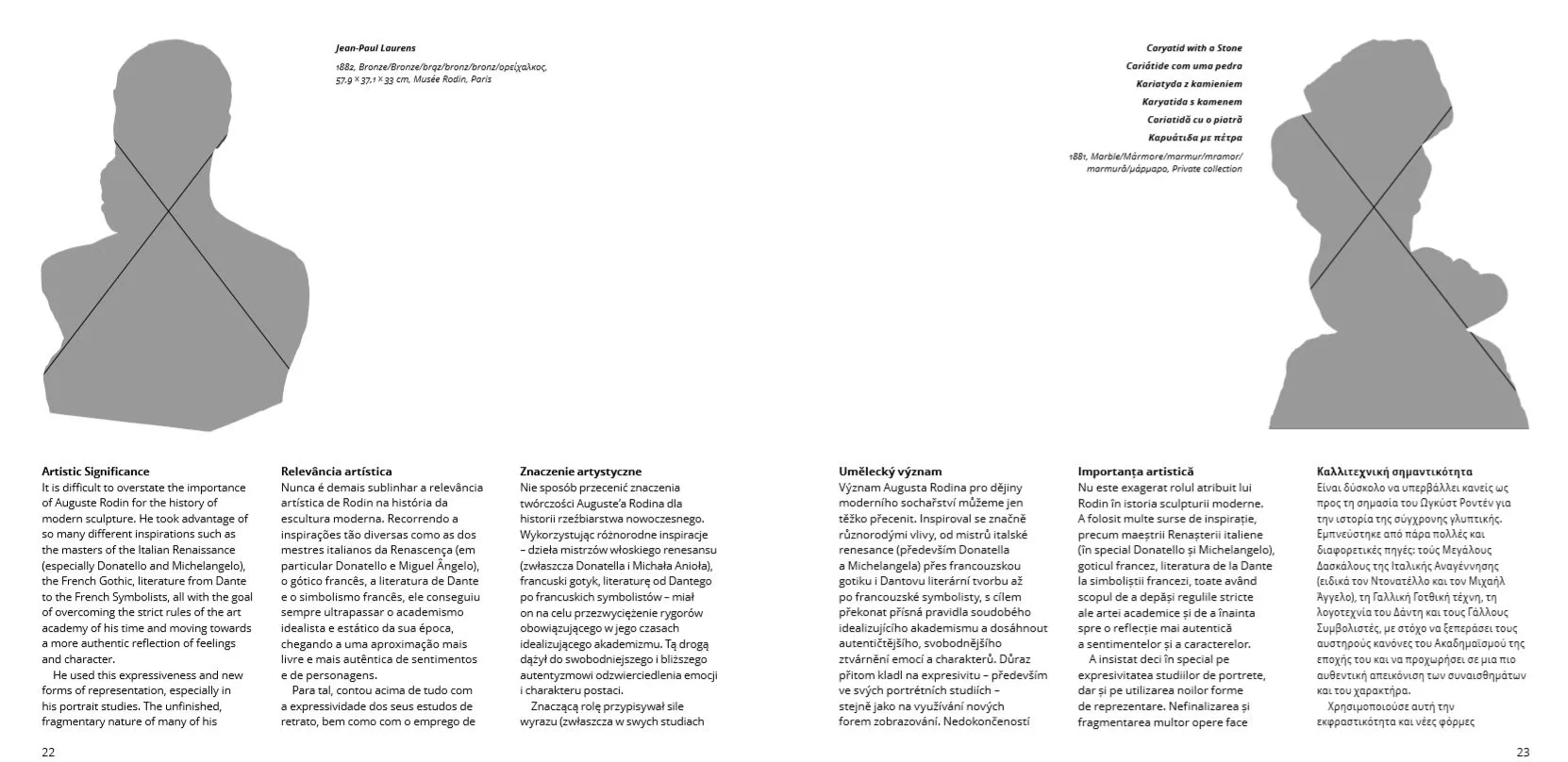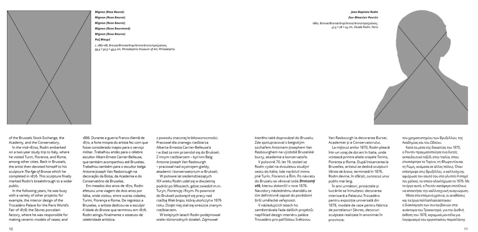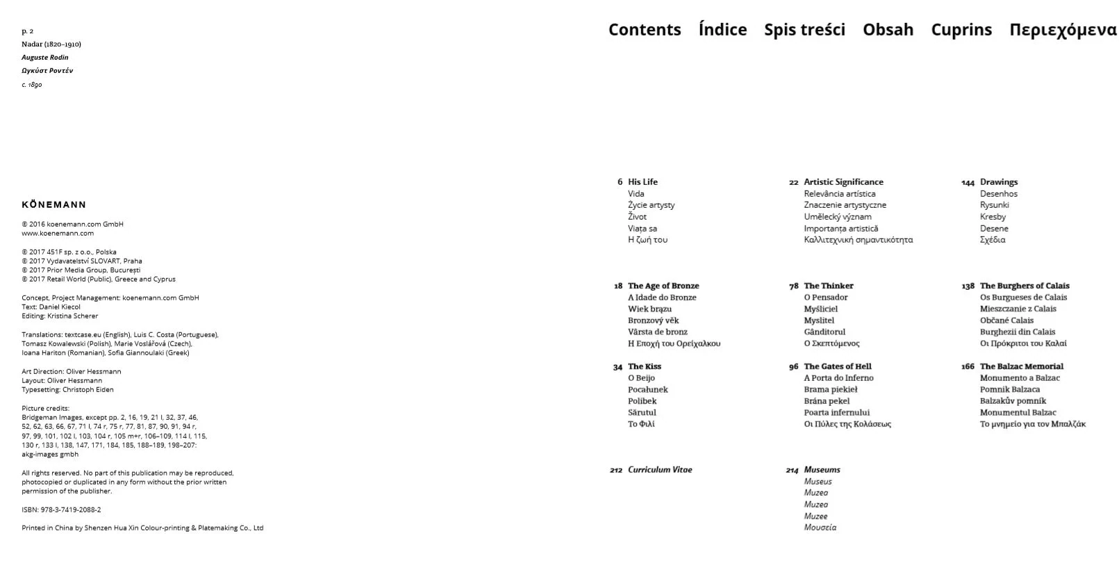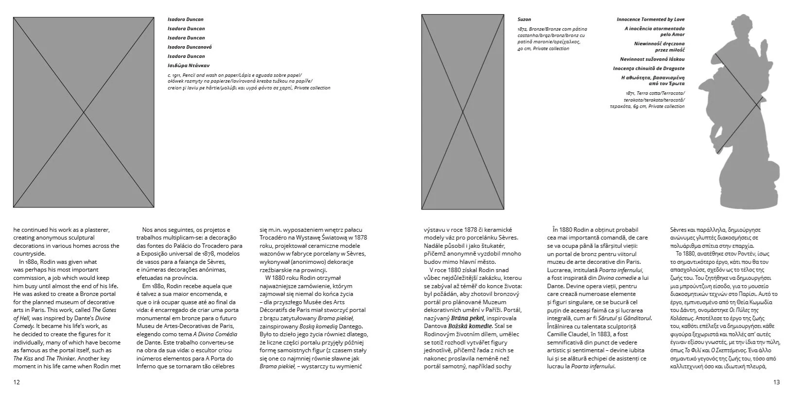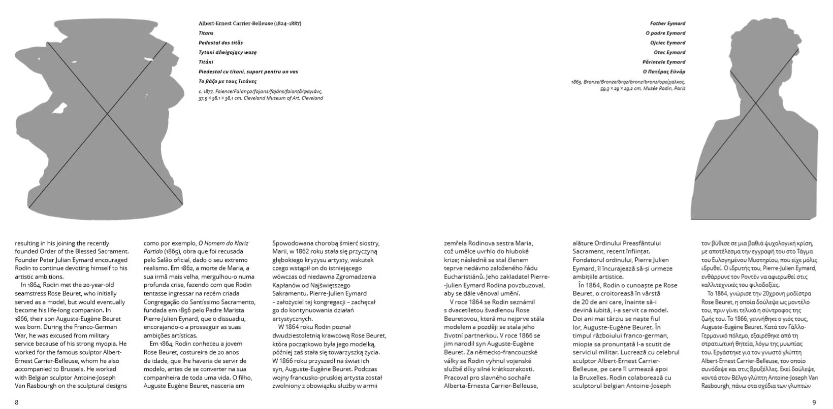 Acestea, precum și numeroasele alte sculpturi, sunt reproduse aici cu fotografii de înaltă calitate, arătând întregul spectru al carierei lungi și productive a lui Rodin.