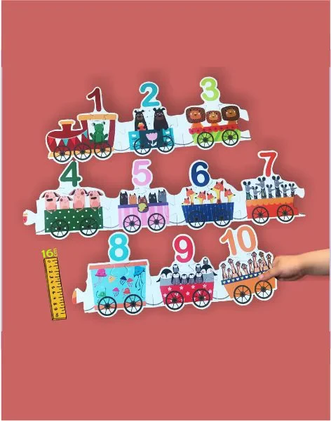 Construieste puzzle-ul trenuletului si numara vagoanele pe masura ce le adaugi.