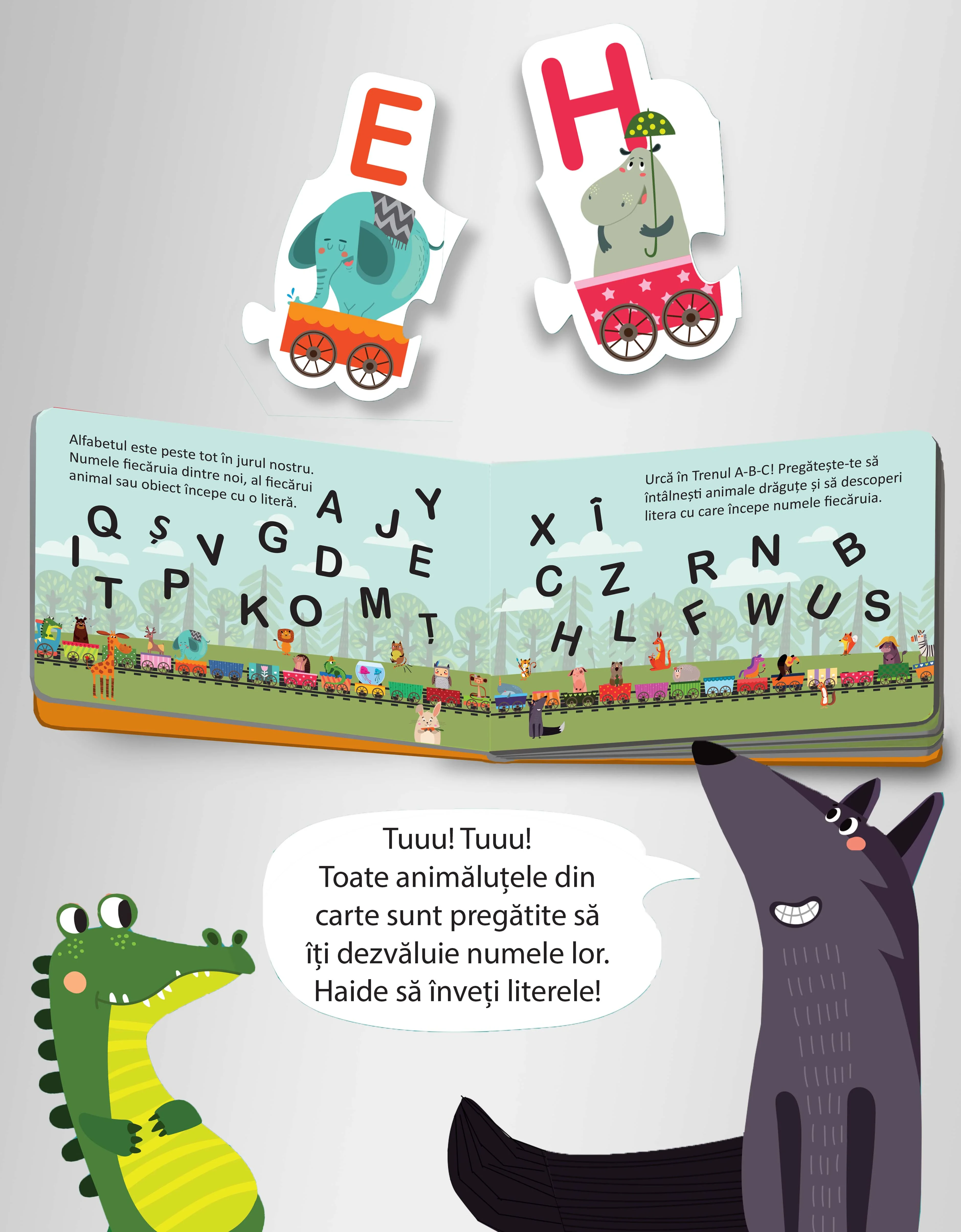 • O carte educativa de 12 pagini, in care sunt ilustrate litere ale alfabetului.